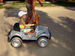 Ежедневно работает детский луна-парк. Дети могут покататься на электромобилях, мокиках, ... ... попрыгать на батуте ... и найти новых друзей